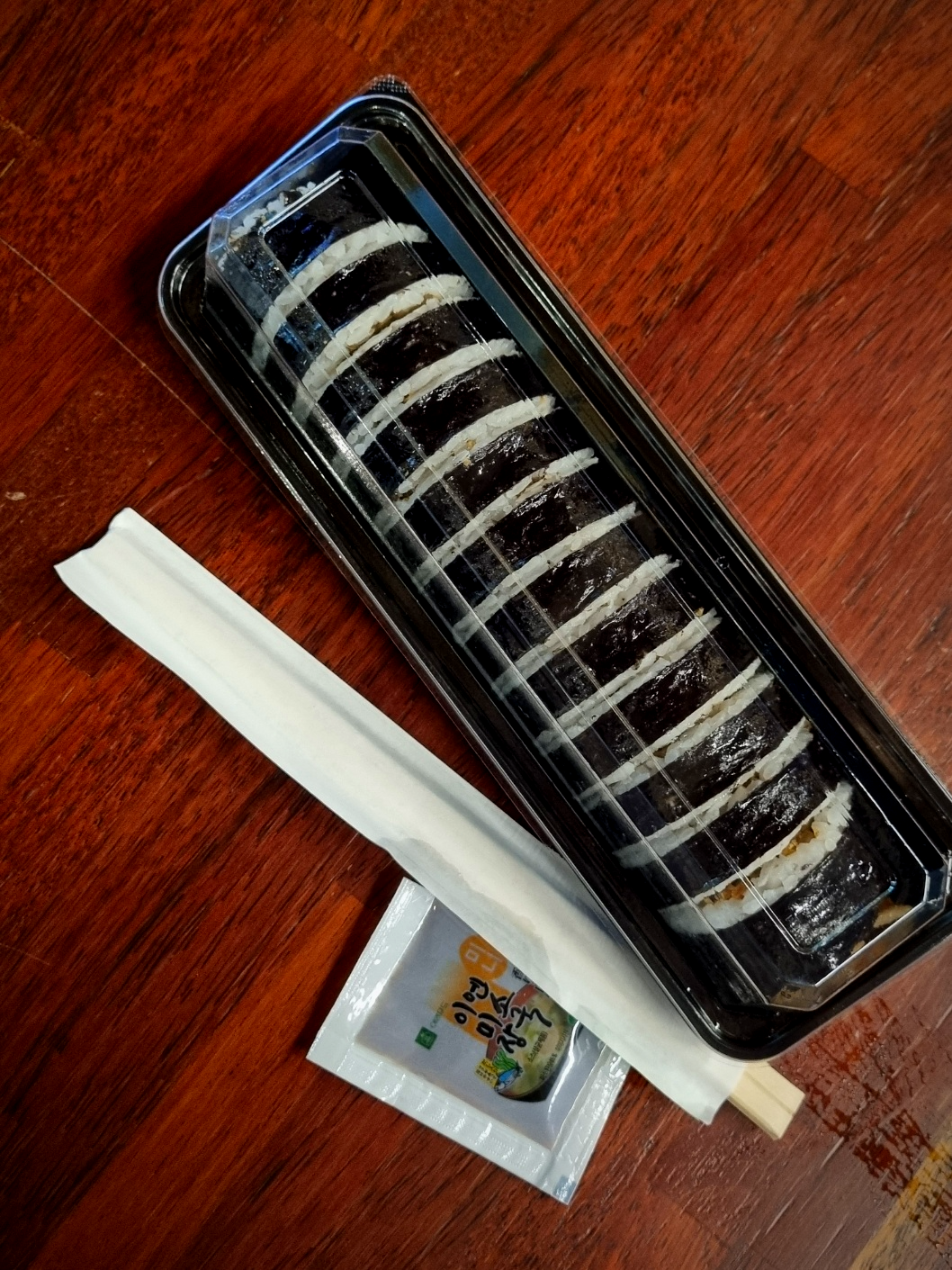 김밥 포장에는 미소 장국이 함께 제공된다는 점이 인상적이었습니다.