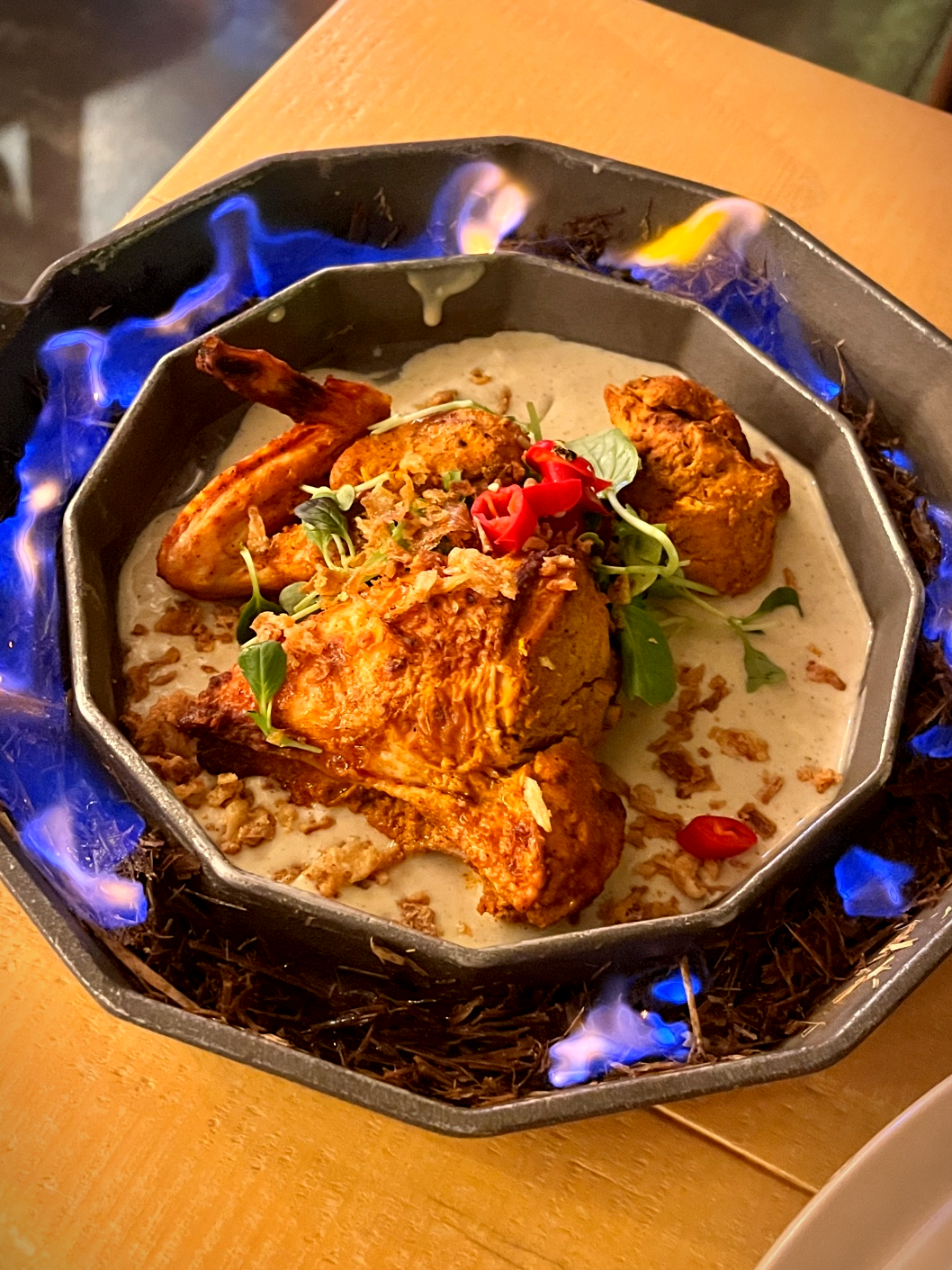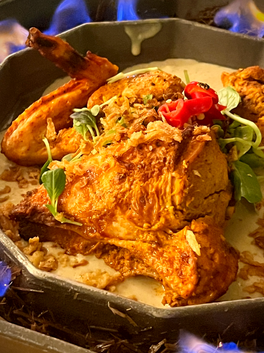 탄두리 치킨은 비주얼적으로 화려하고 인상적인 메뉴였습니다.