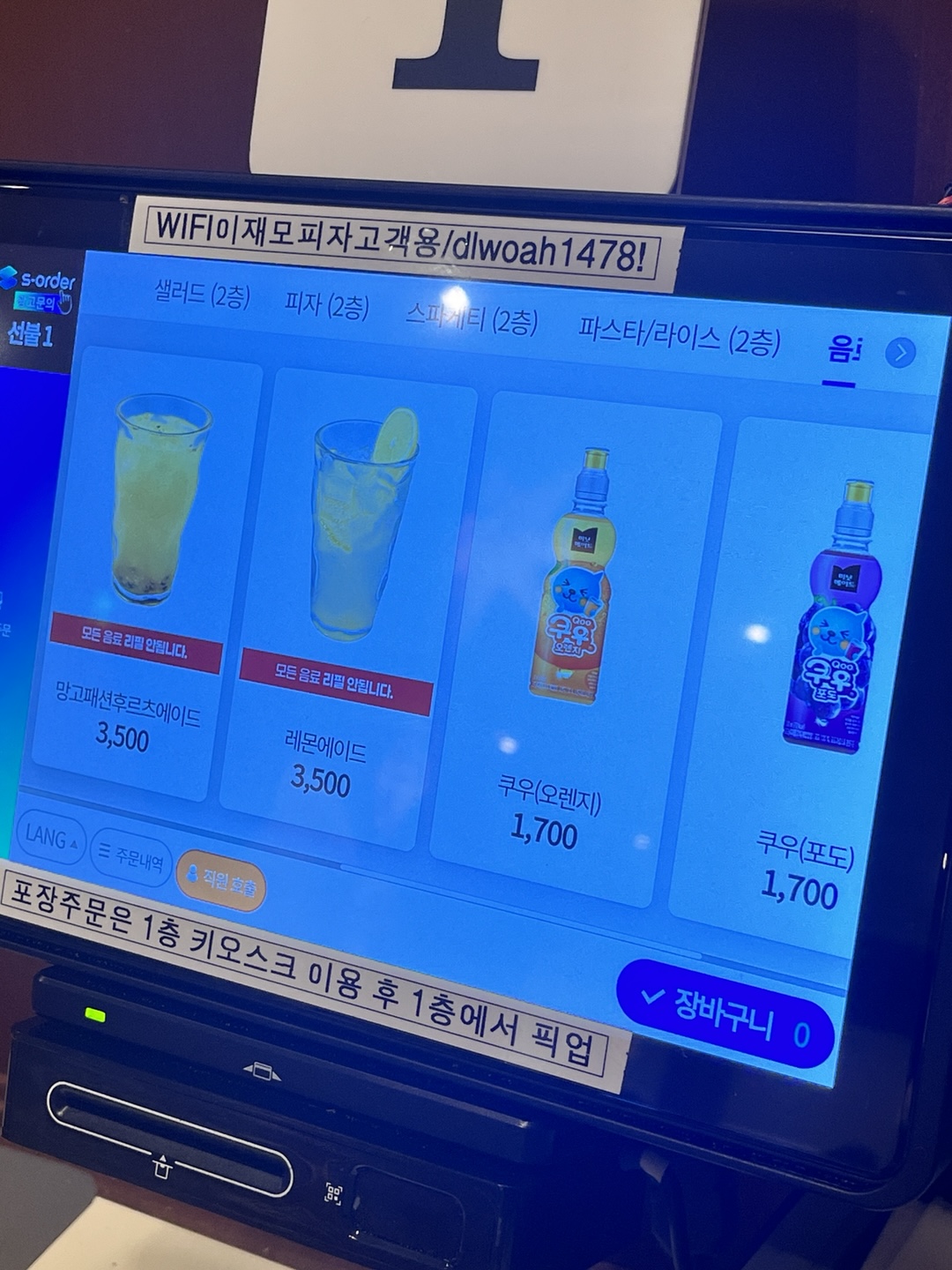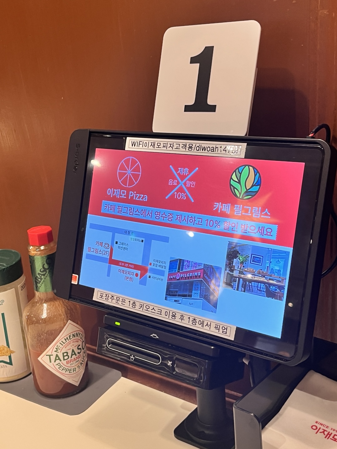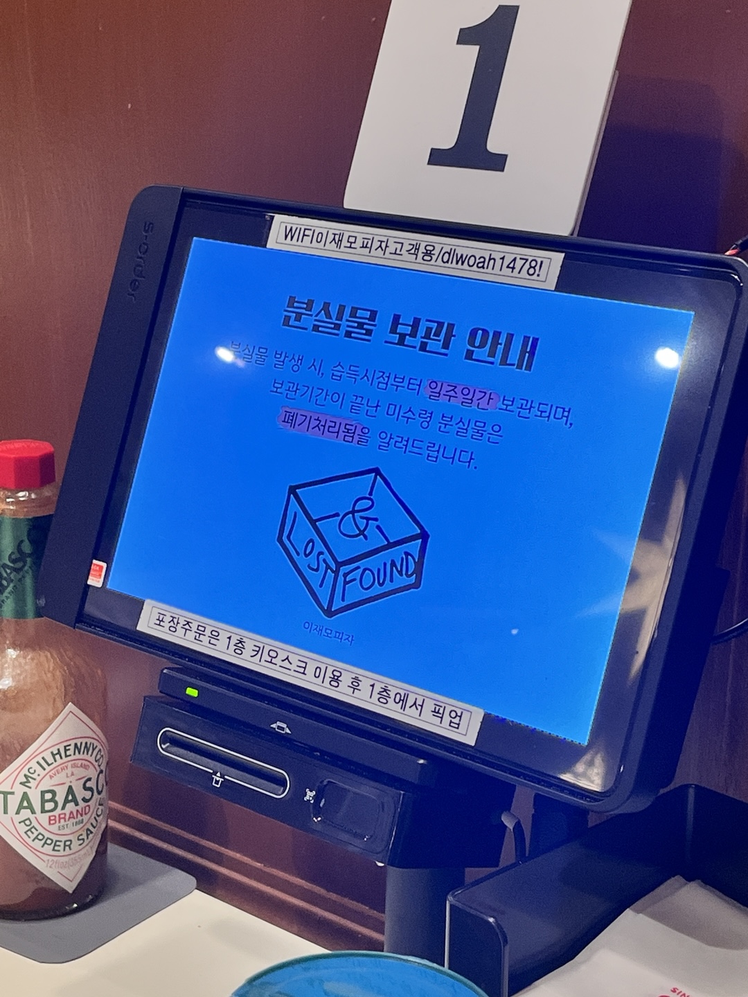 와이파이 비밀번호도 키오스크에 적혀 있으니 참고하시면 좋을 것 같습니다.