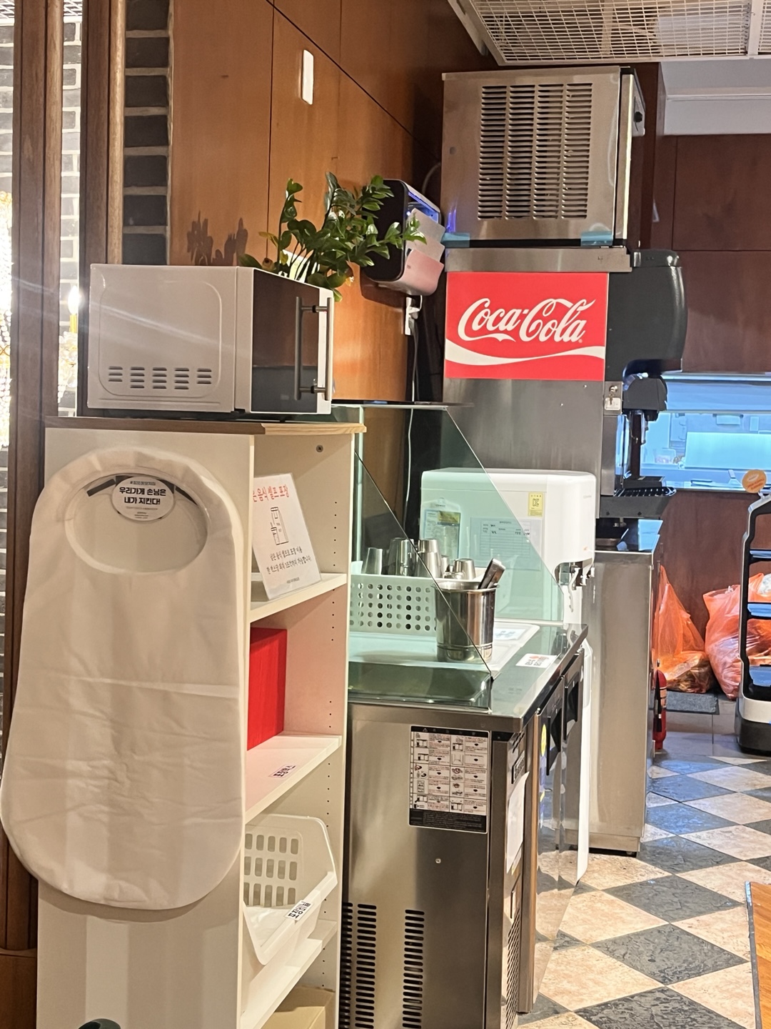 앞치마는 포장 코너 옆에 걸려 있어 필요하면 가져다 쓰면 됩니다.